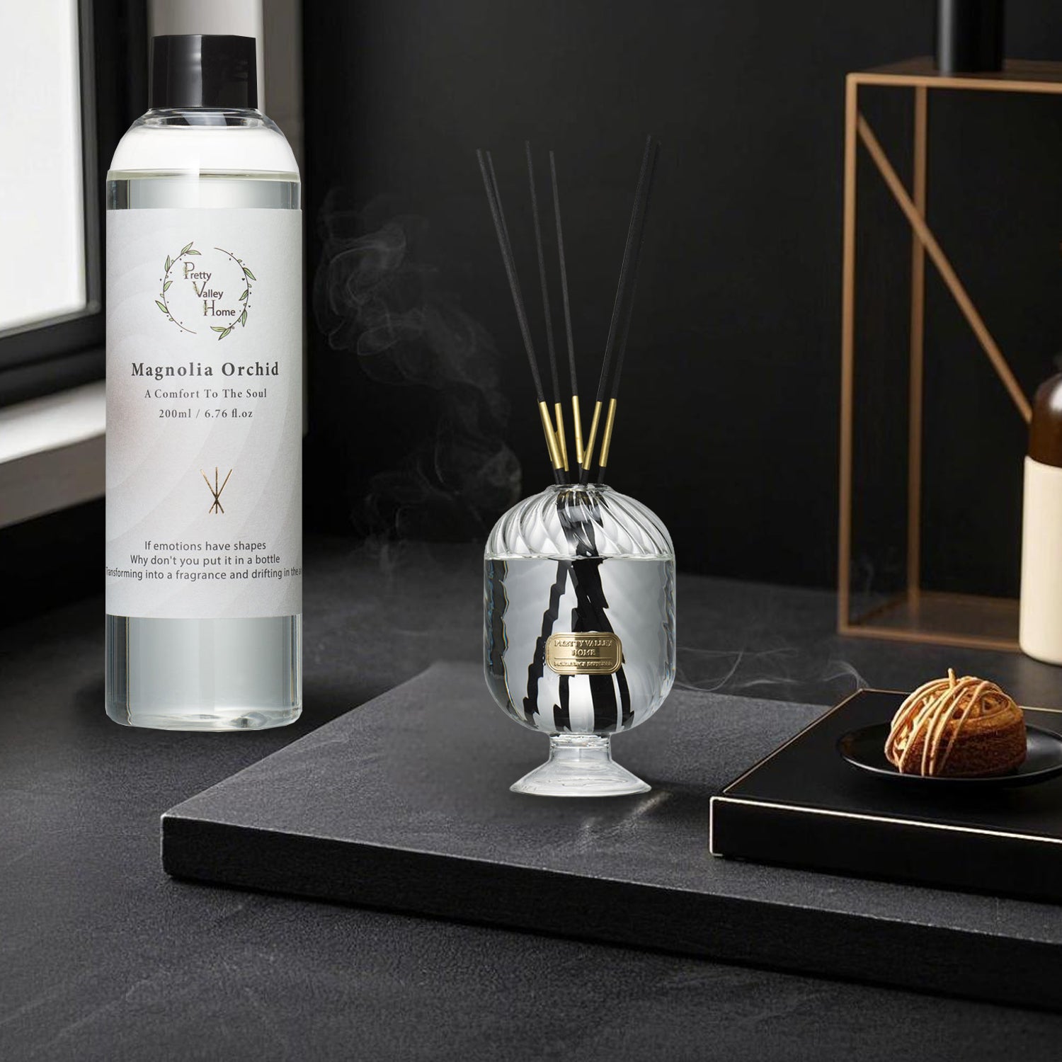 New This Crystal Glass Reed Diffuser Sets seamlessly blends in with Home/ Room Decor, making it a staple in any home or shop. Celebrate Festival with elevated all years decor.
