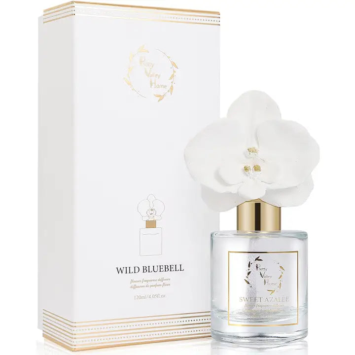 Pretty Valley Home Ceramic Orchid Flower Fragrance Diffuser Set Wild Bluebell