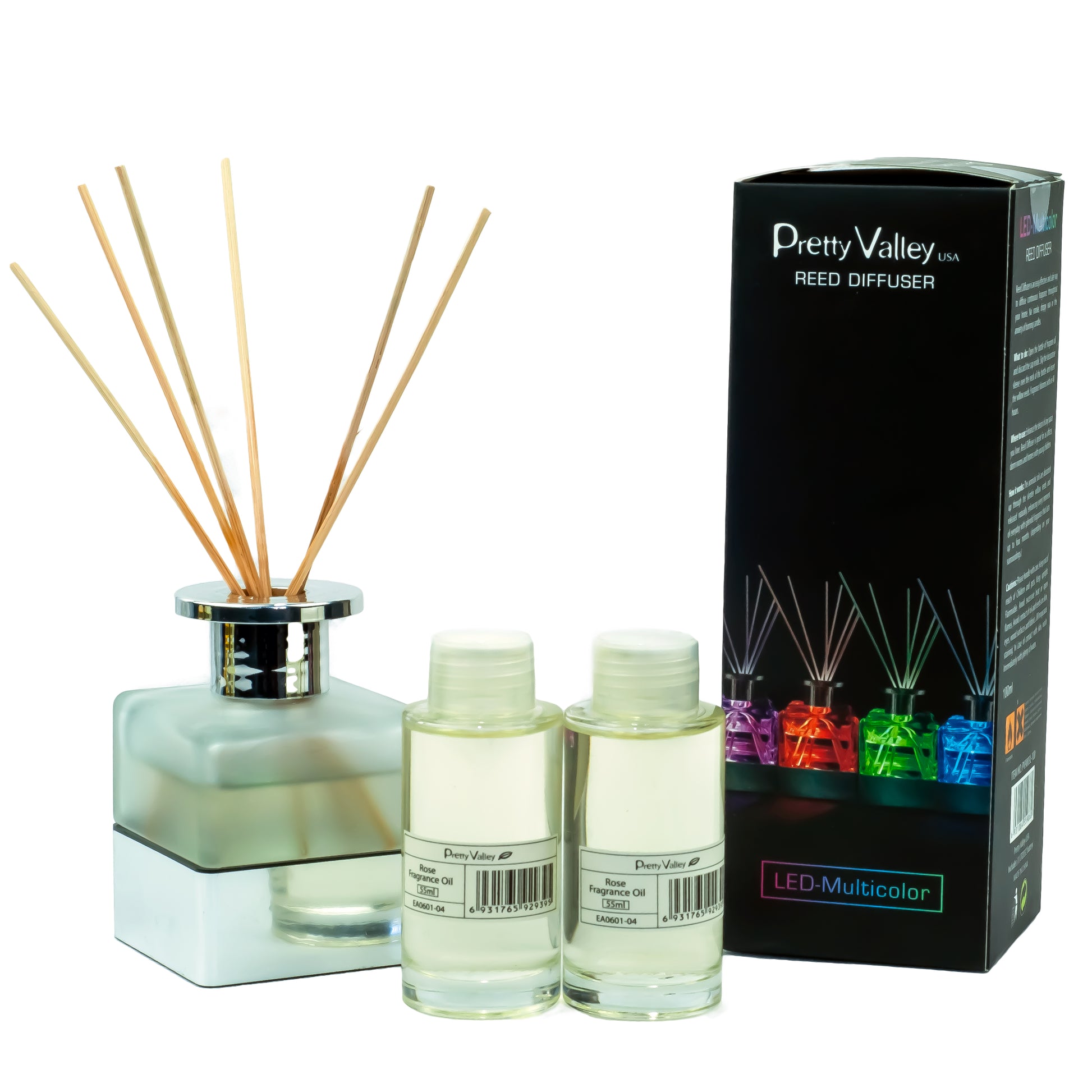 Pretty Valley Home LED Lighted Frosted Glass Reed Fragrance Diffuser Rose 110ml