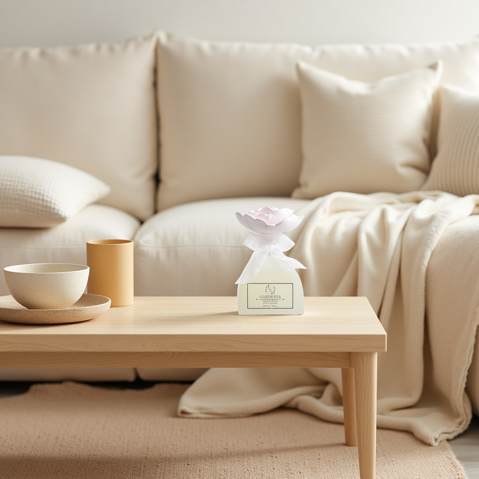 Indulge your senses with the Pretty Valley Home Gardenia & Rose Ceramic Flower Reed Diffuser Gift Set — where handcrafted art meets timeless fragrance.