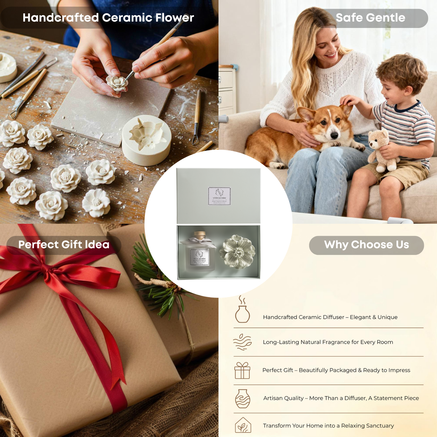 - Handcrafted Ceramic Flower: Every piece is made and painted by hand, giving each diffuser a unique and artistic look.