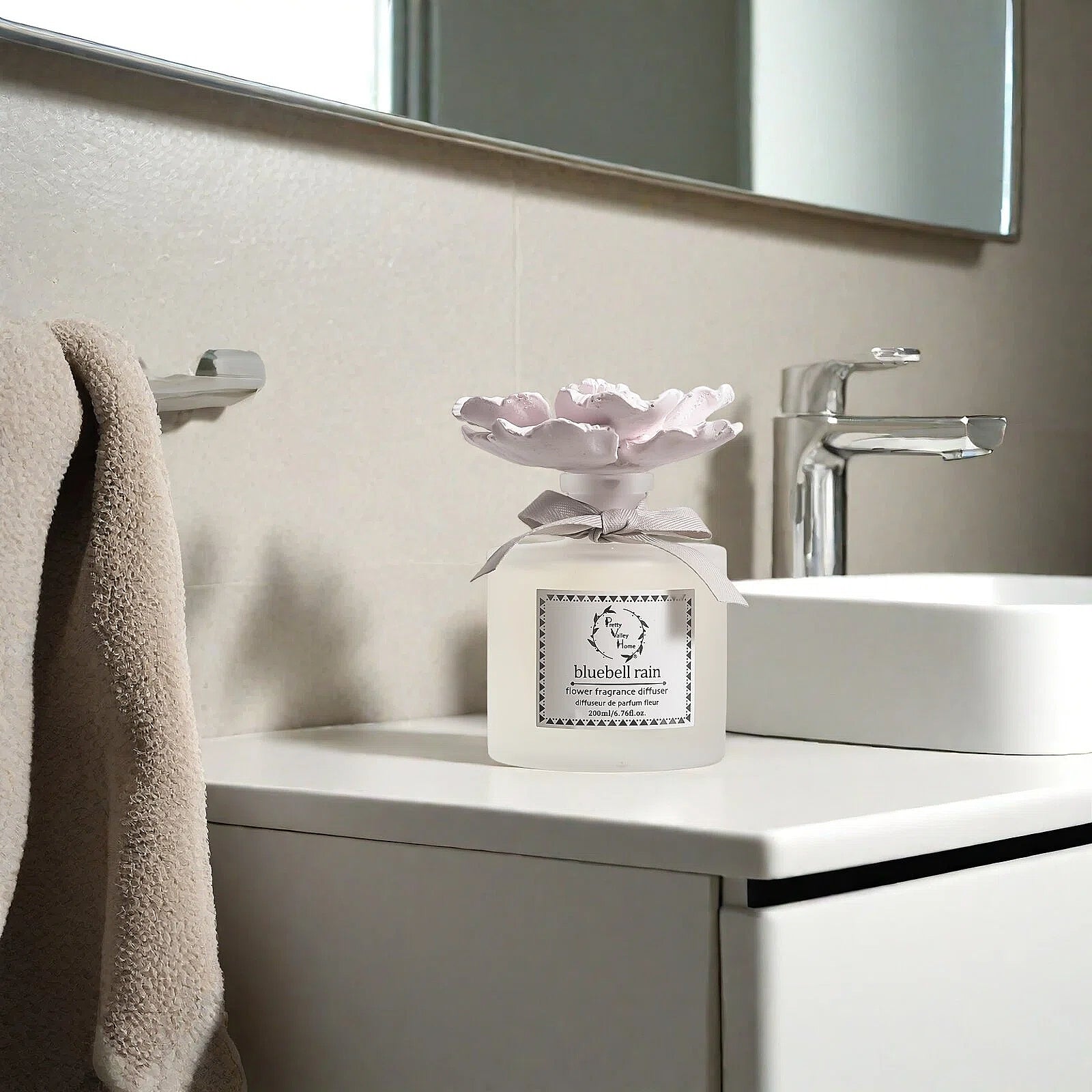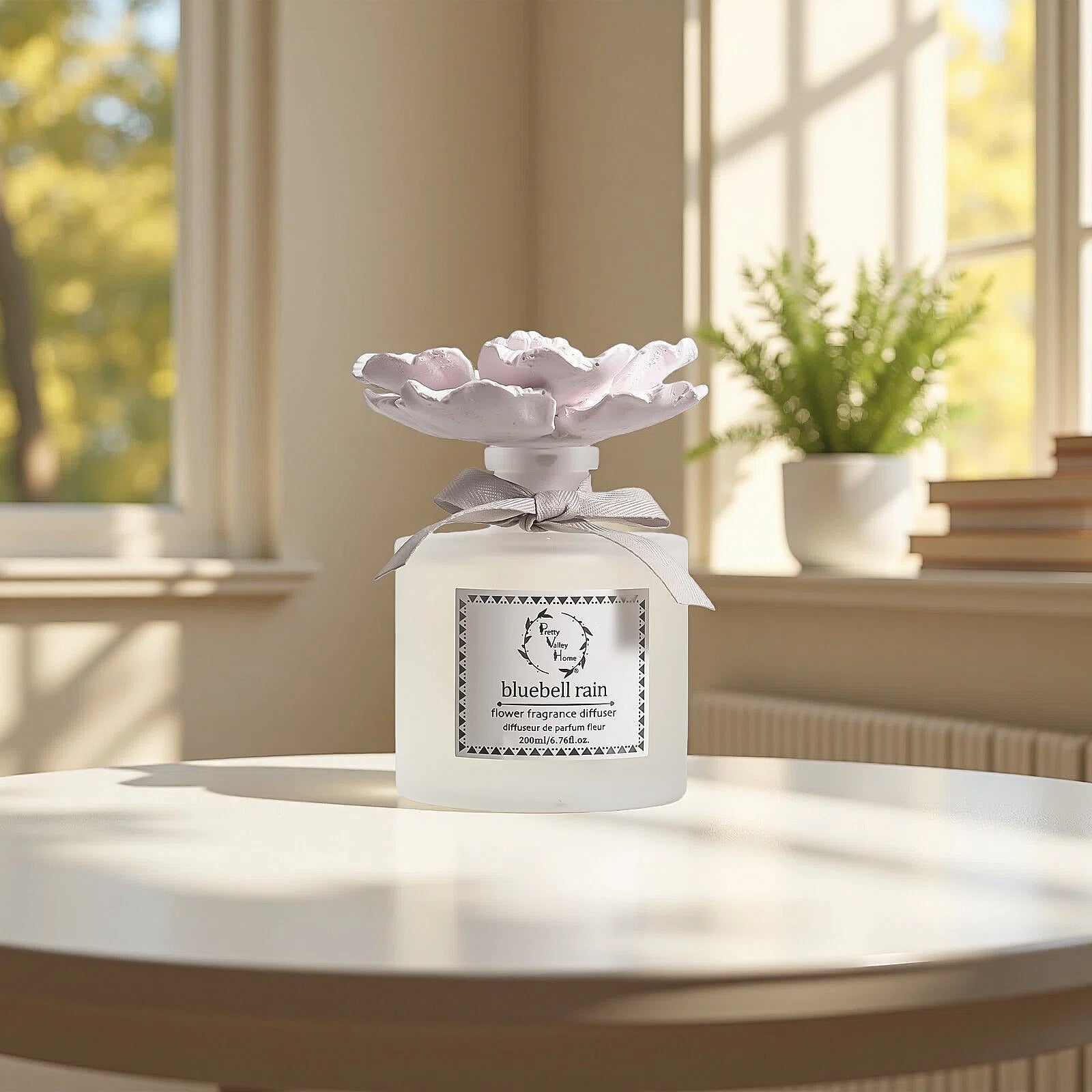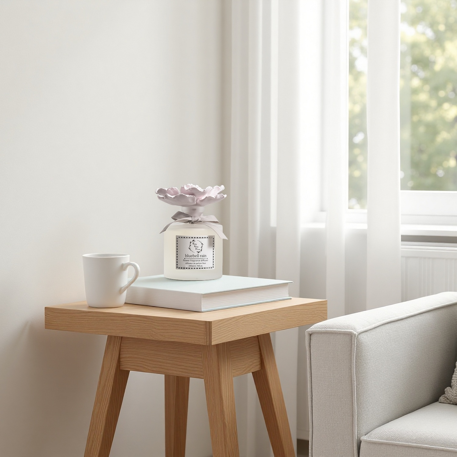 Handcrafted with care, each ceramic flower is shaped and painted by artisans, offering not only a refreshing Bluebell Rain fragrance but also a timeless piece of home décor. The pastel pink ceramic blossom slowly absorbs the fragrance oil and diffuses it naturally, creating a gentle, lasting aroma that feels like a spring garden after the rain.