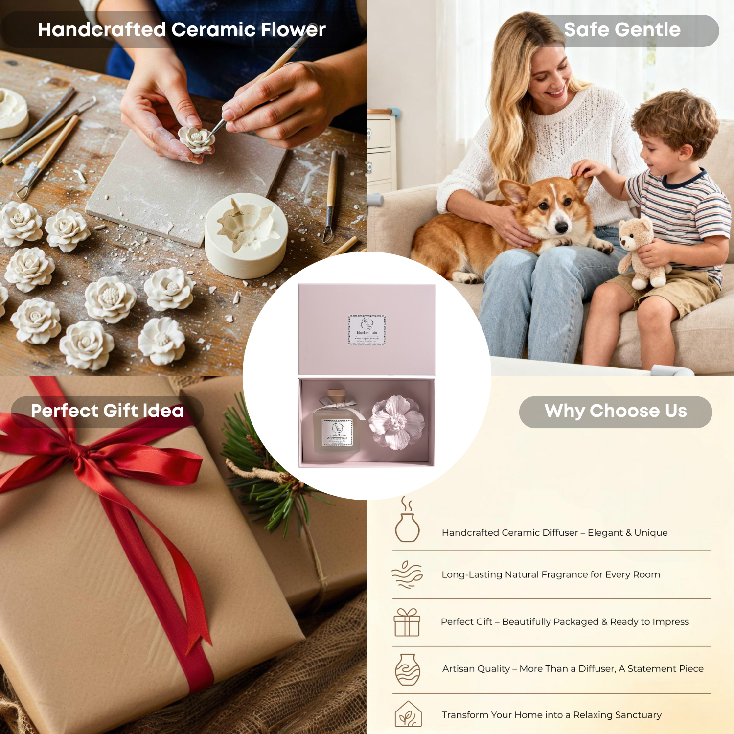 Whether displayed on a vanity, shelf, or coffee table, this Pretty Valley Home Ceramic Flower Diffuser brings elegance, fragrance, and relaxation into every corner of your home — making it the perfect thoughtful gift for someone special.