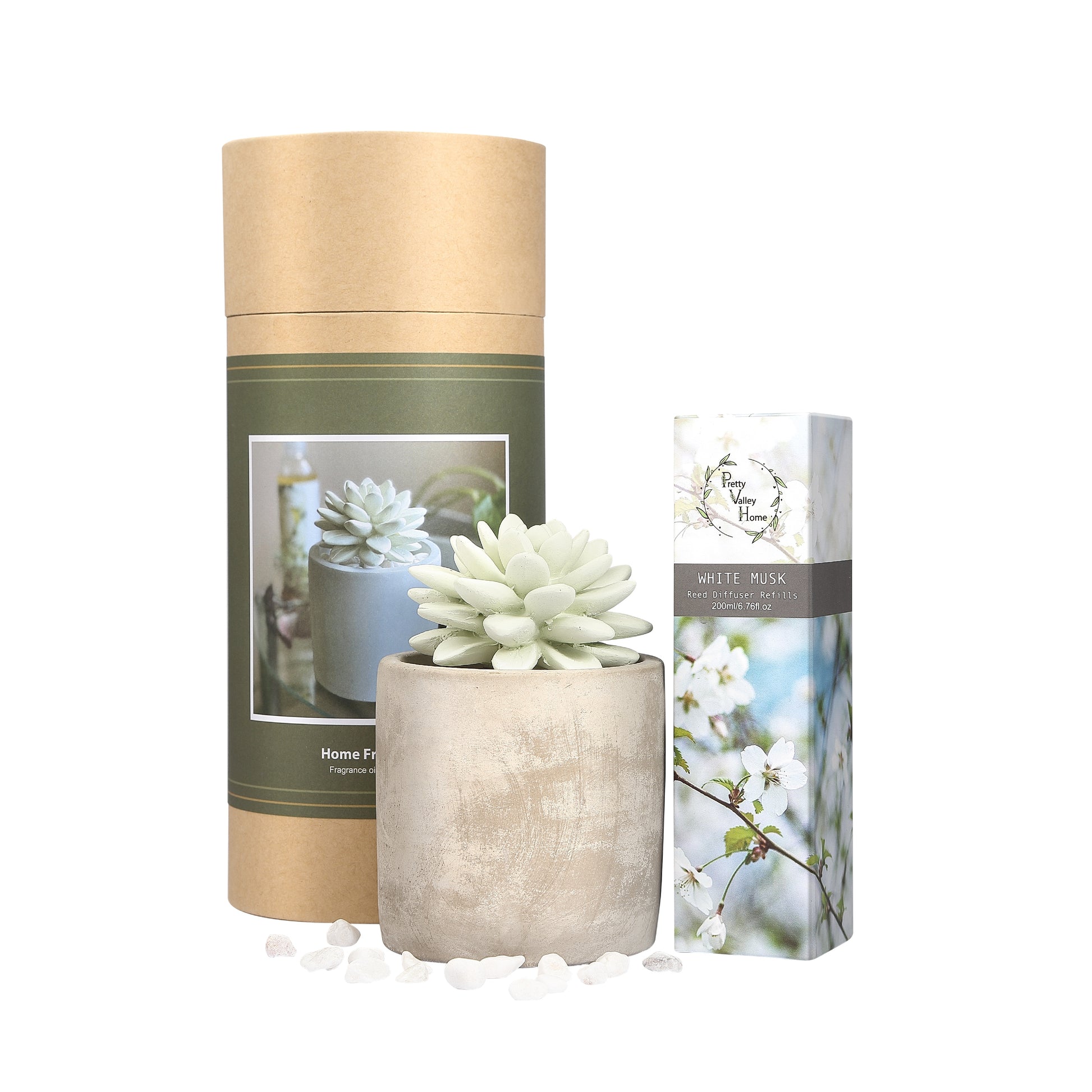 Pretty Valley Home Succulent Planter Diffuser Gift Set Combo White Musk 200ml
